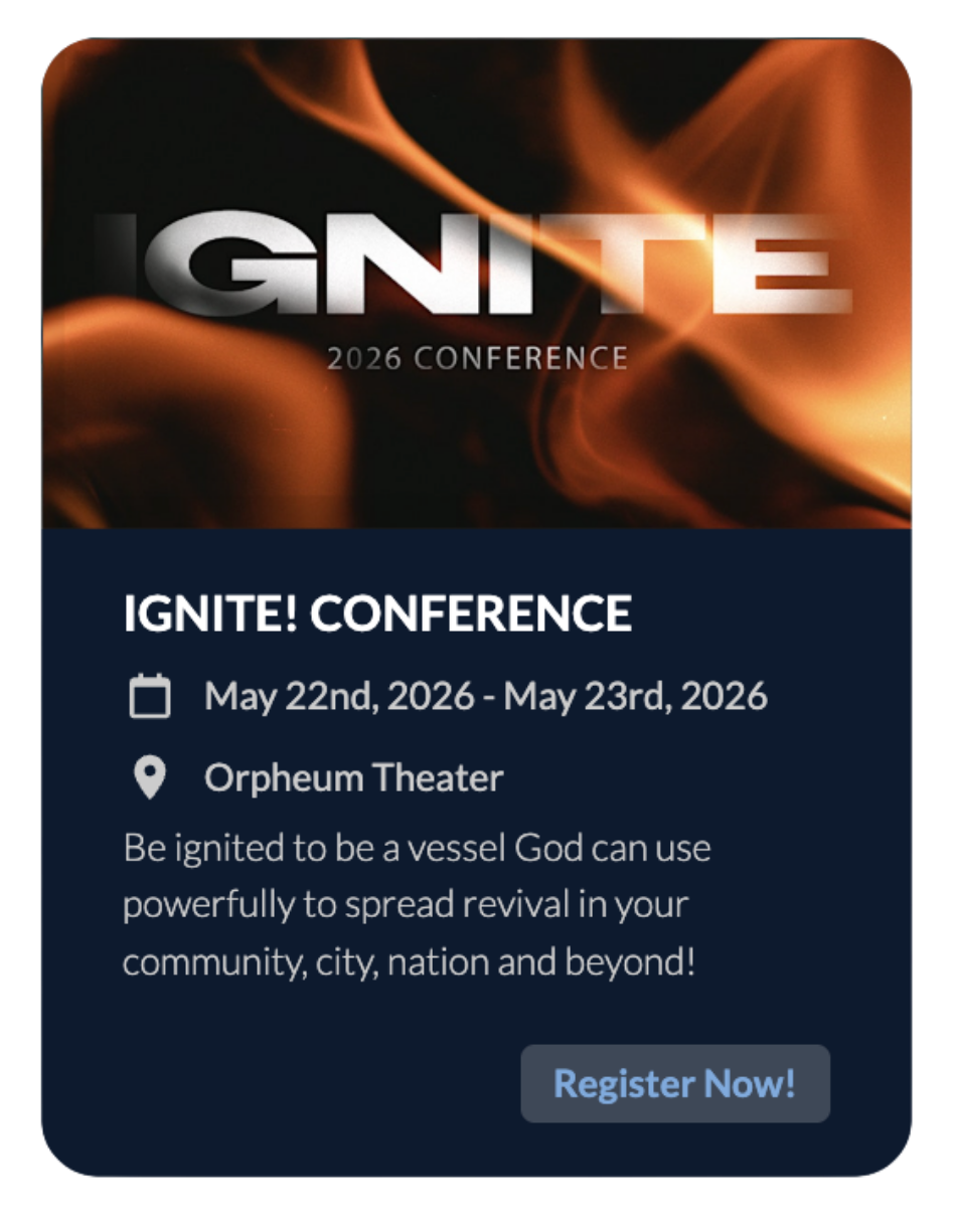 God has released revival to the world and we are a community of believers who are passionate to see Jesus have His way; coming in power, moving in signs, wonders & miracles. God is releasing revival to America & we are committed to be surrendered vessels of Him in His mighty move.